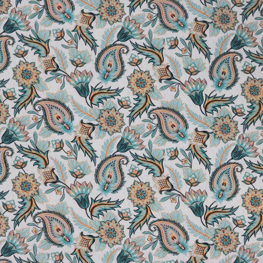 Azure Whisper Fabric – Paisley Grove Print | Pure Cotton Shirt Fabric For Men
